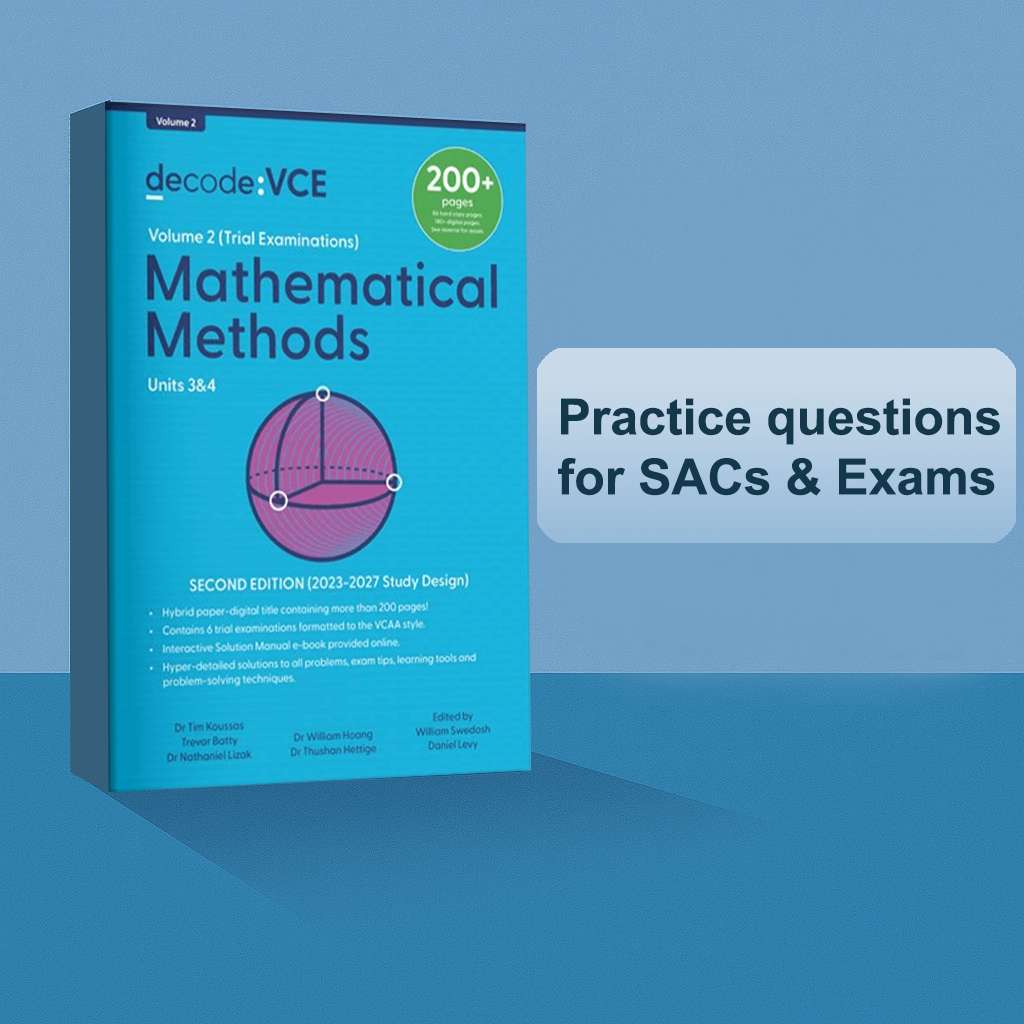 Decode's Topic Tests and Trial Exams offer original practice tests and exams for VCE and HSC. Hundreds of pages of worked solutions are available in each book - never get confused again! The Decode VCE Revision Guides come as question books containing originally written practice tests and trial exams in the VCAA format, paired with an interactive Solution Manual e-book containing model answers, marking scheme and comprehensive explanations for each answer that can cover underlying theory, problem solving skills and exam tips.