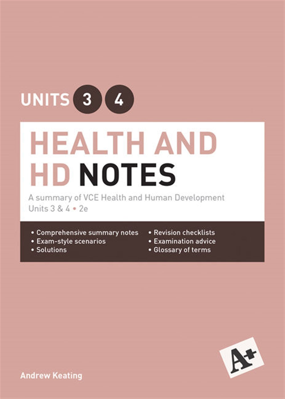 A+ Health & HD Notes is a comprehensive companion for students studying VCE Health and Human Development Units 3 & 4. It has been specifically written to address the VCE Study Design implemented in 2018. These notes supplement class work and act as a resource for students wanting a clear summary of the key knowledge dot points and the opportunity to practice key skills.