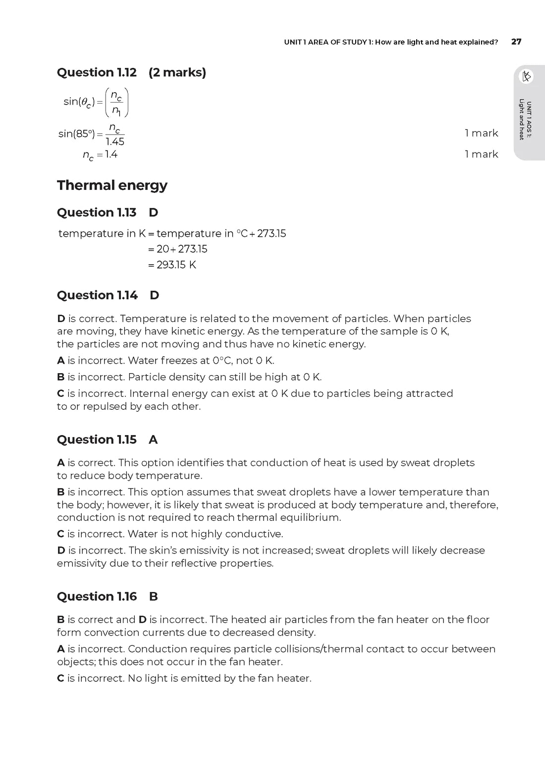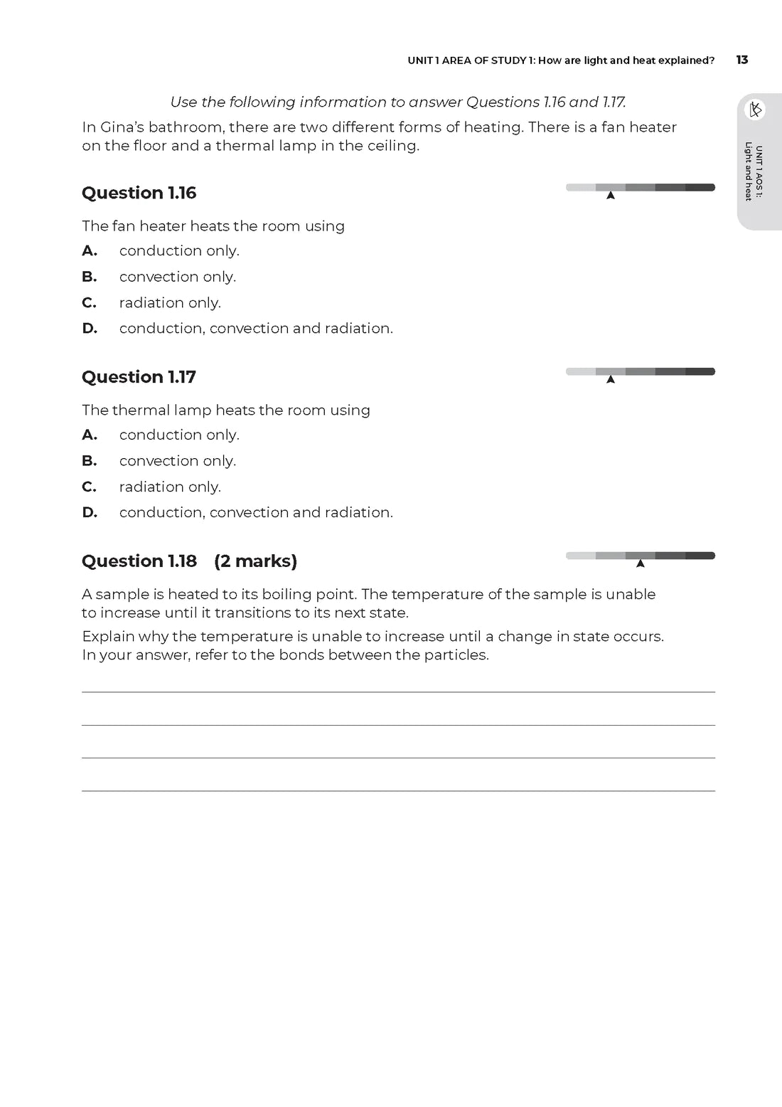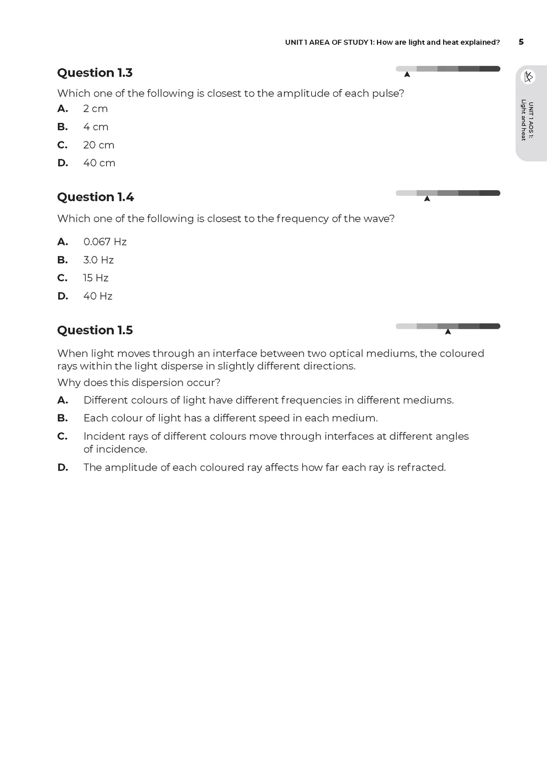 Each question emulates the scope and style of those on the VCAA exams. In addition, the difficulty ratings help you to develop an understanding of assessor expectations. At the end of each chapter, you will find detailed solutions and commentary that is written by an expert VCE teacher and explains the content and thought processes required to achieve full marks.