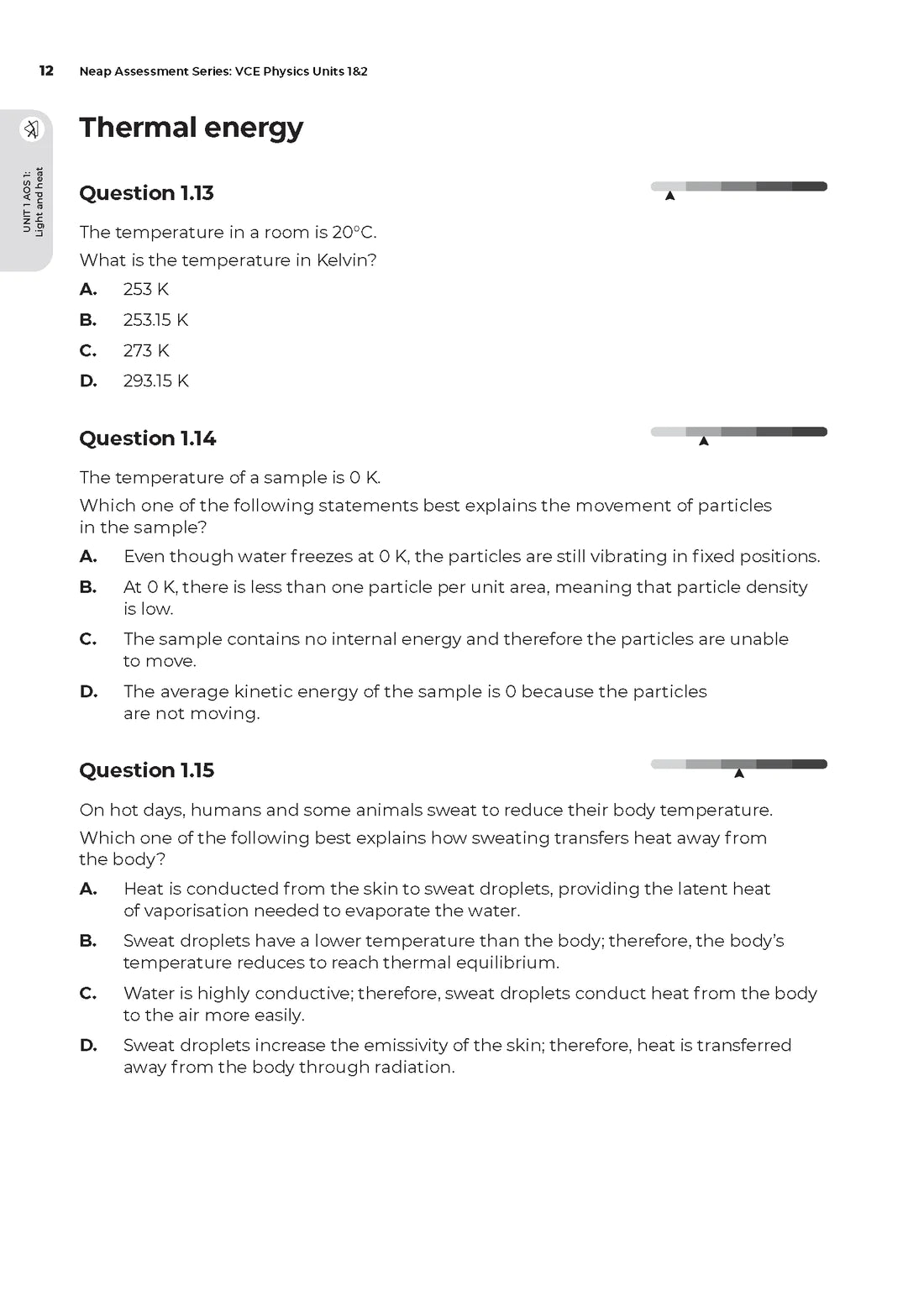 The Neap Assessment Series: VCE Physics Units 1&2 is VCE Physics most trusted assessment resource. Each book offers comprehensive coverage of the entire Study Design and will guide you through the subject by refining your knowledge and test-taking skills.