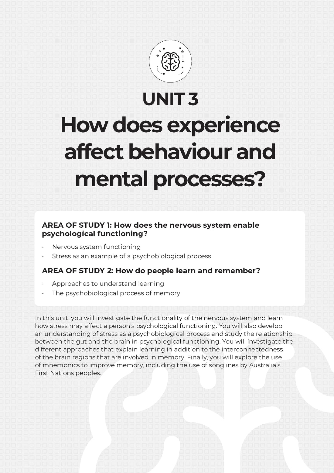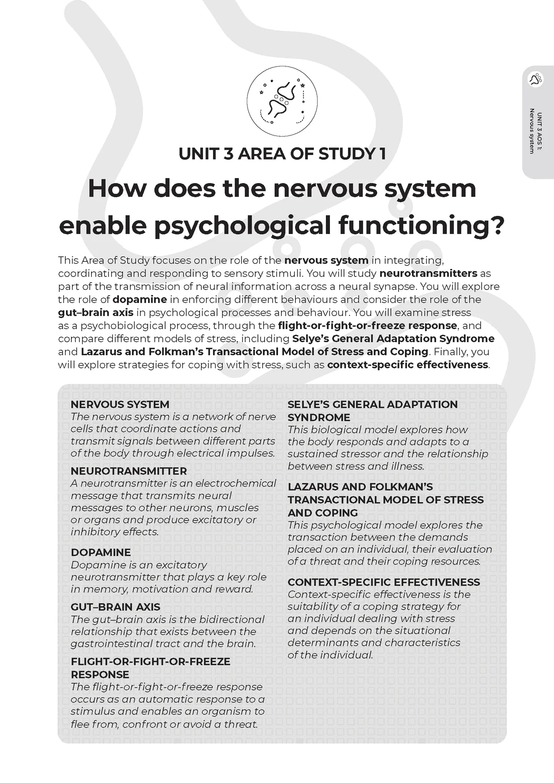 Unit and Area of Study summaries and key definitions