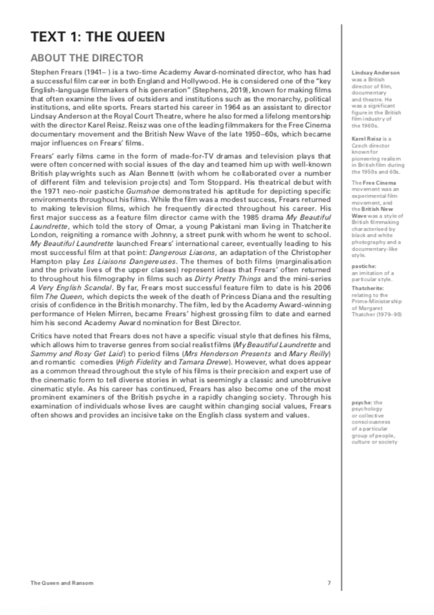 The Neap Comparative Guide to The Queen by Stephen Frears and Ransom by David Malouf features: