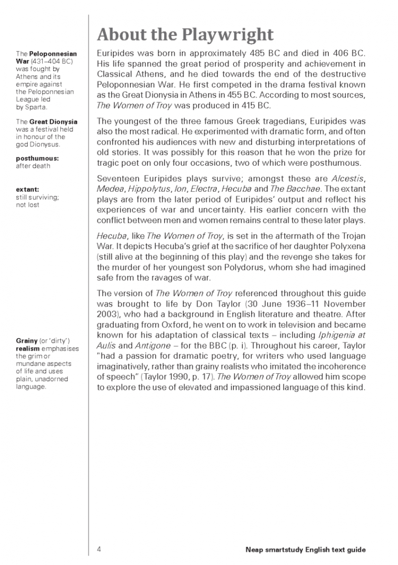 The Neap English Text Guide to The Women of Troy by Euripides enables students to acquire a deeper understanding of the text, to develop their own critical thinking skills, and to tackle their essays and exams with greater confidence.