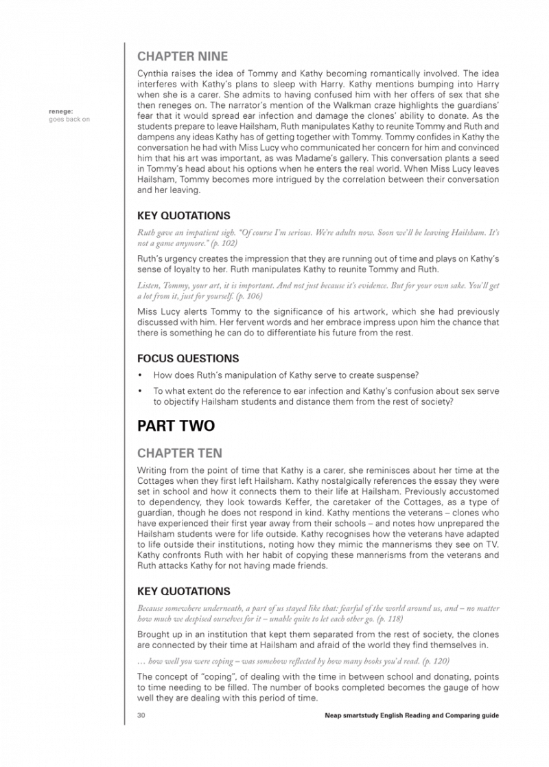 The 2022 edition of the Neap English Reading and Comparing Guide to Pair 3: Things We Didn’t See Coming and Never Let Me Go features: