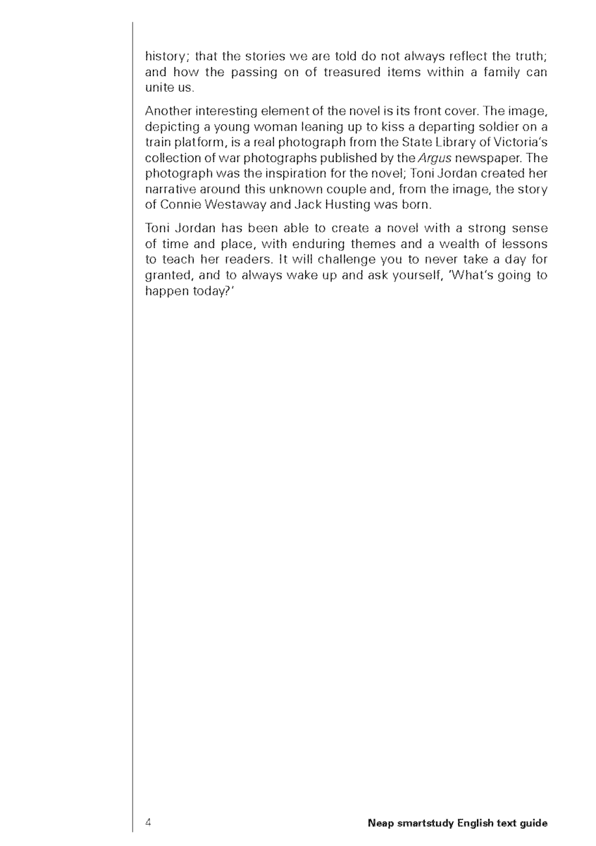 The Neap English Text Guide to Nine Days by Toni Jordan enables students to acquire