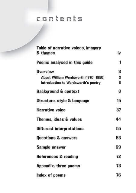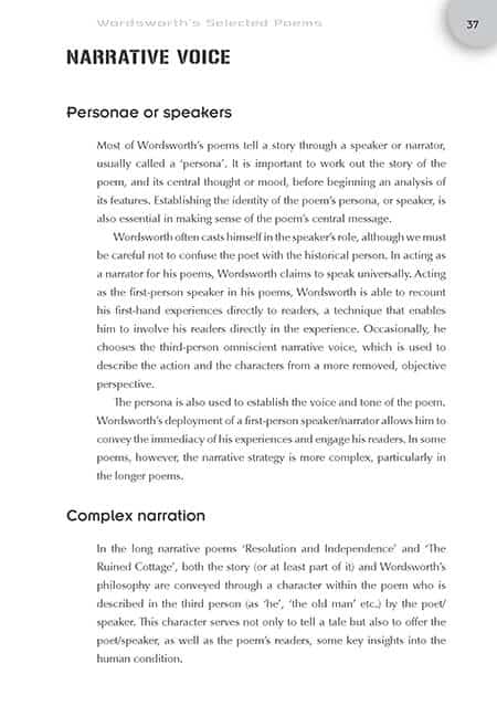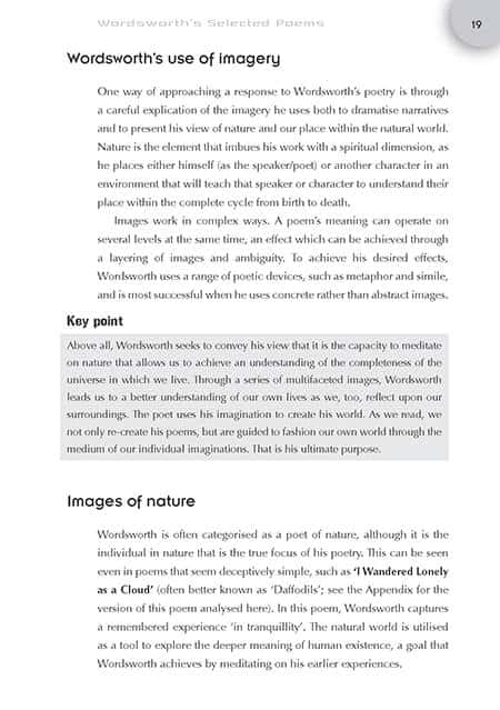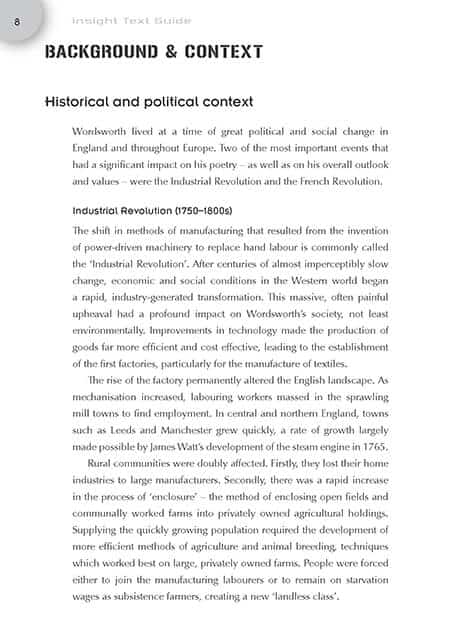 The Insight Text Guide William Wordsworth’s Selected Poems refers mainly to the versions of the poems included in Penguin’s Selected Poems (2004). The following poems are analysed in detail: