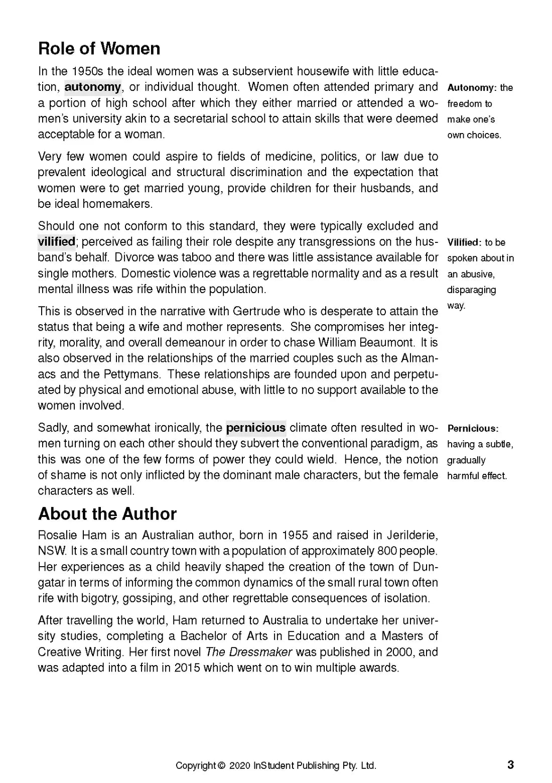 Looking for The Dressmaker summary and analysis? Look no further! This book will guide you through every scene, character, and quote to prepare you for your essays and exams.